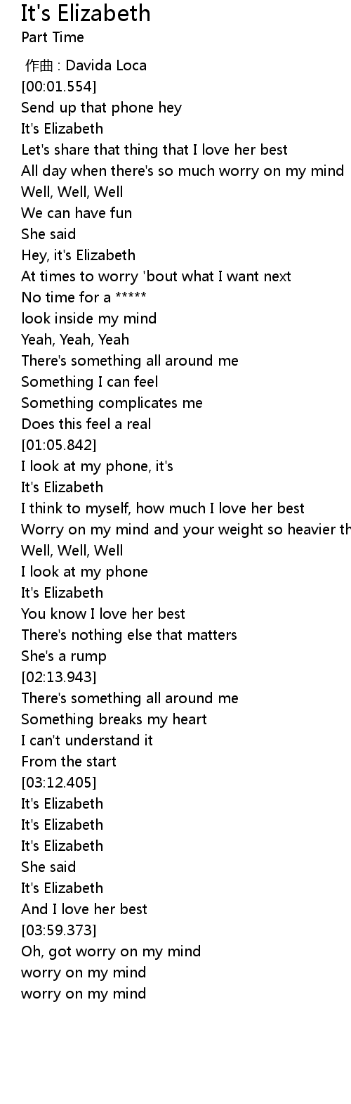 | [00:18.612] | It' s Elizabeth |