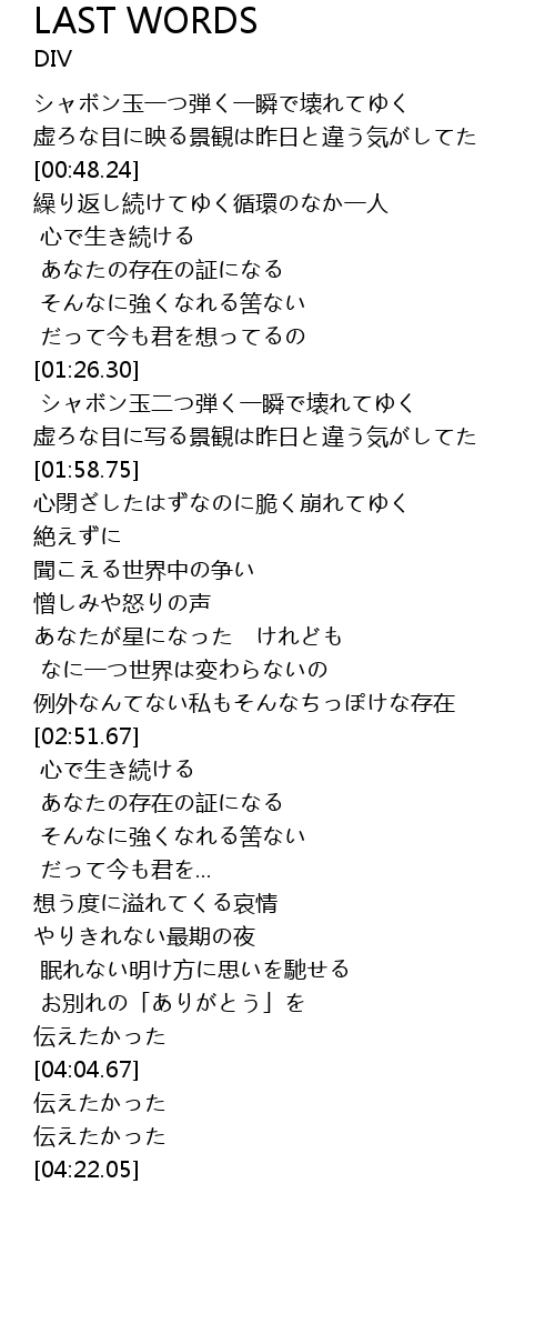 | [03:51.86] | お別れの「ありがとう」を |