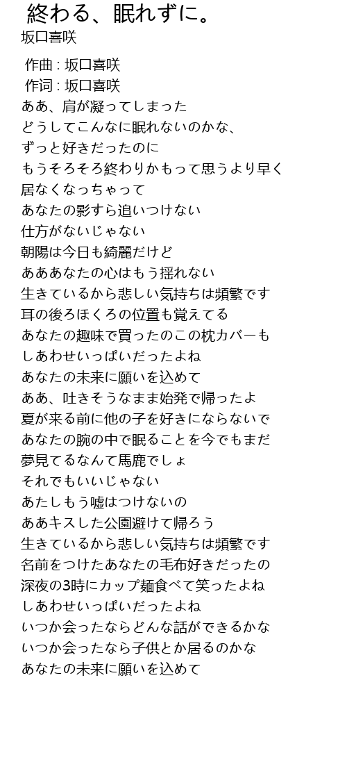 | Song | 終わる、眠れずに。 |