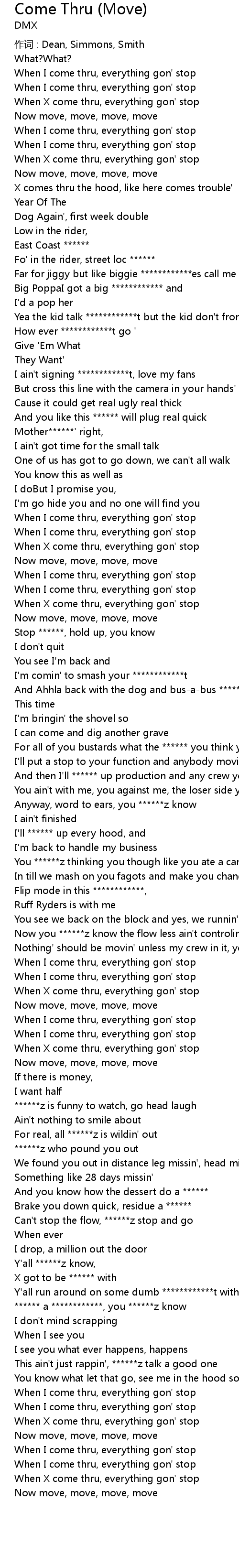 | When X come thru, everything gon' stop | |