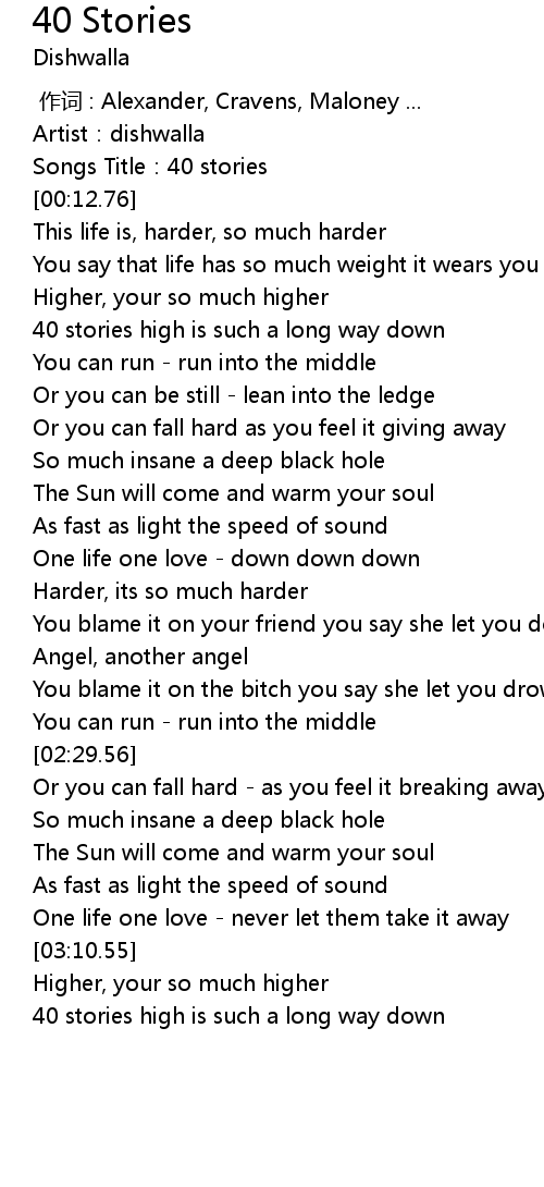 | [01:19.40] | 40 stories high is such a long way down |