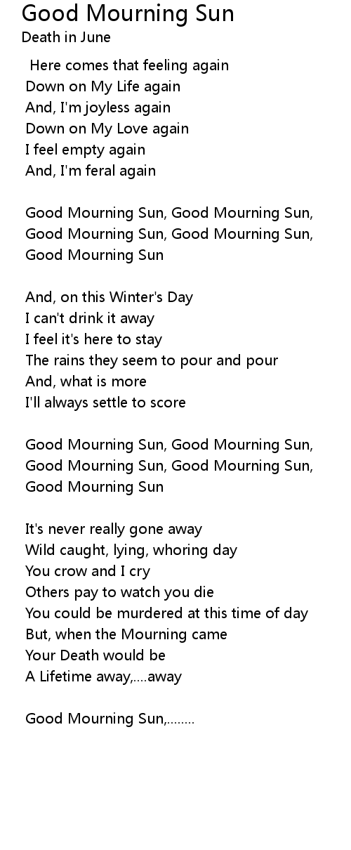 Good Mourning Sun, Good Mourning Sun, |