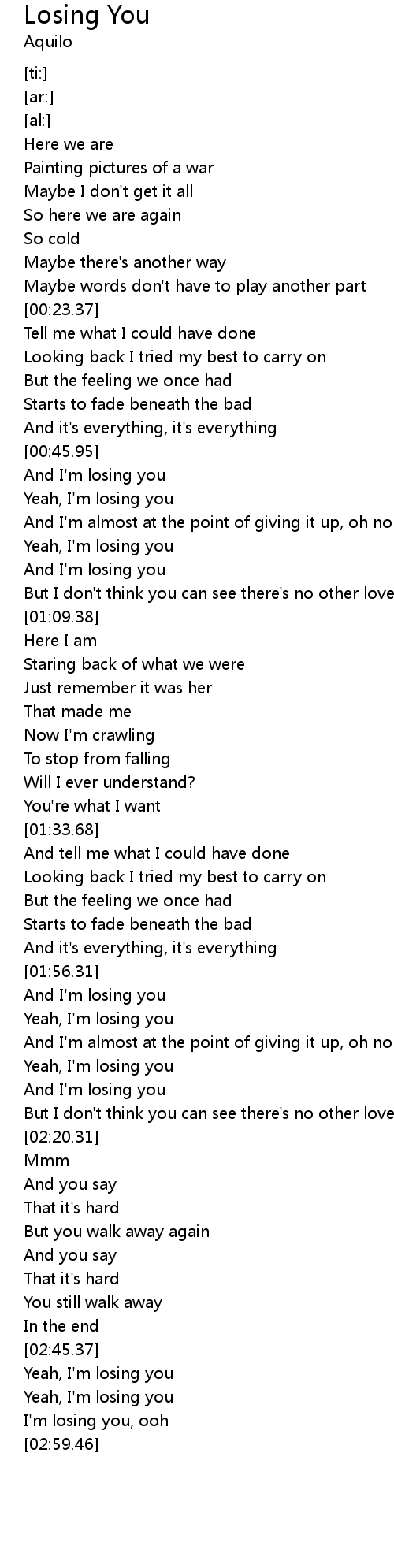 And I'm losing you |