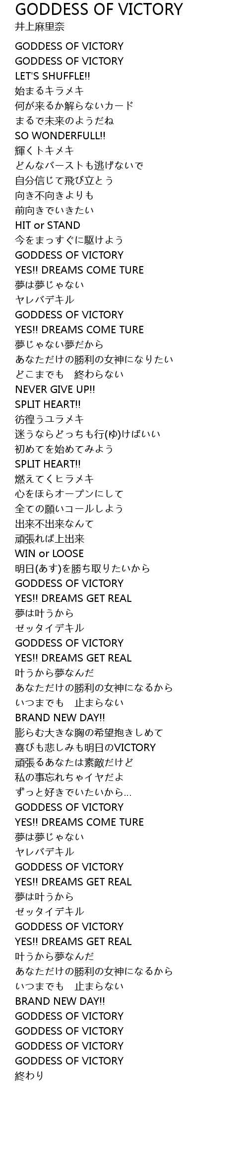 | [00:55.37] | GODDESS OF VICTORY |