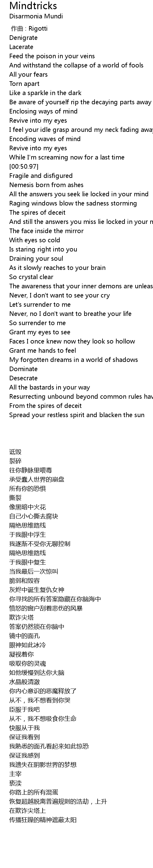 | [00:59.96] | All the answers you seek lie locked in your mind |