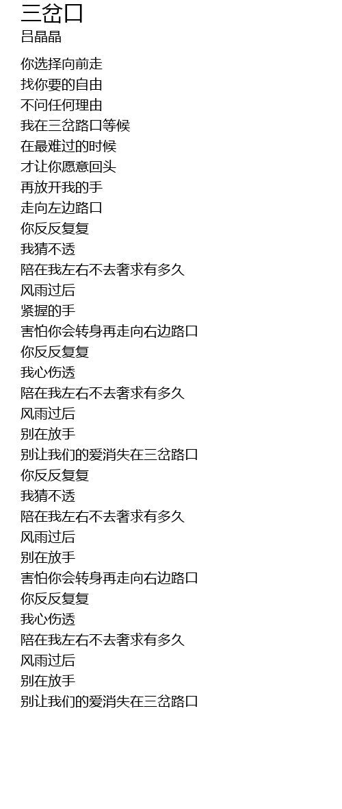 | [02:56.520] | 别让我们的爱消失在三岔路口 |