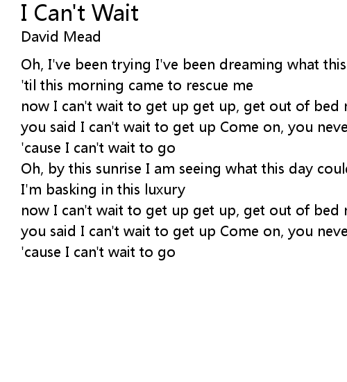 now I can't wait to get up get up, get out of bed my mind is filled with words you said I can't wait to get up Come on, you never know Just wind my wings 'cause I can't wait to go |