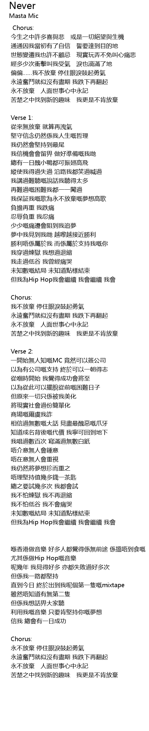| 我保証我嘅歌為永不放棄嘅夢想高歌 | |