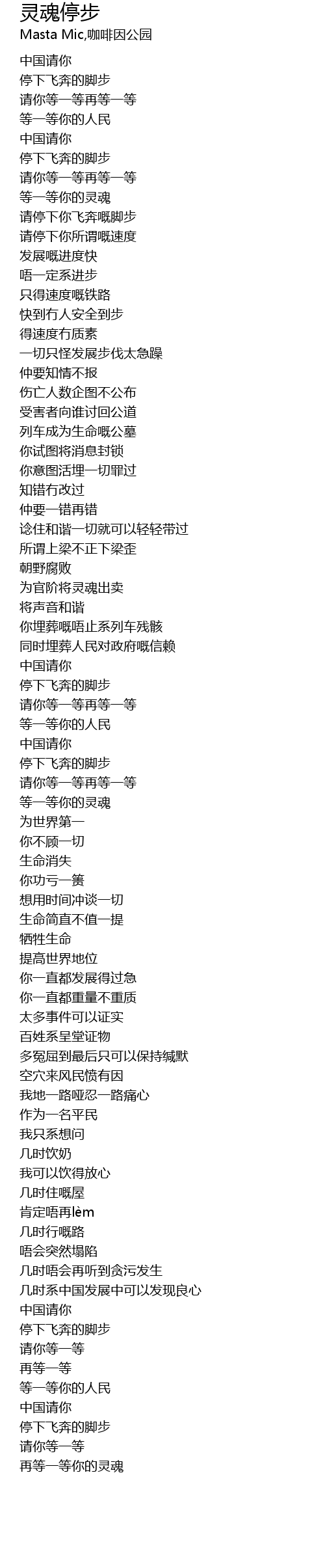 | [00:29.78] | 请停下你所谓嘅速度 |