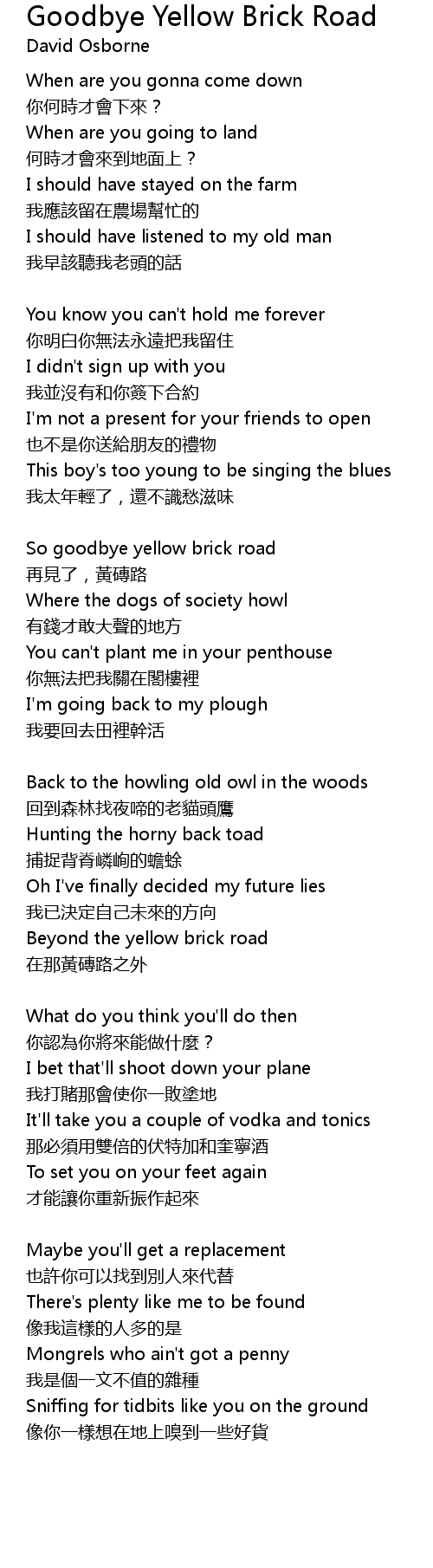 | So goodbye yellow brick road | |
