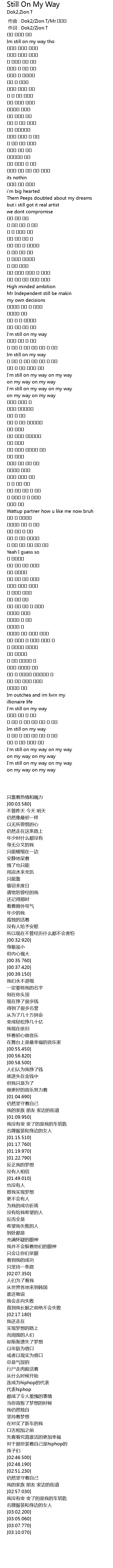 | [00:03.580] | Im still on my way tho |