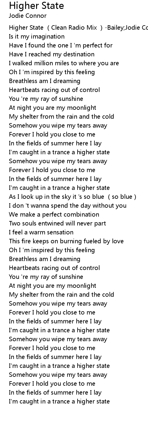 | [00:00.966] | Higher State Clean Radio Mix Bailey Jodie Connor |