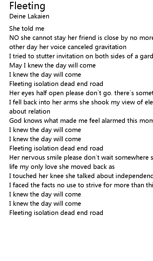 NO she cannot stay her friend is close by no more delay maybe we`ll meet some other day her voice canceled gravitation |