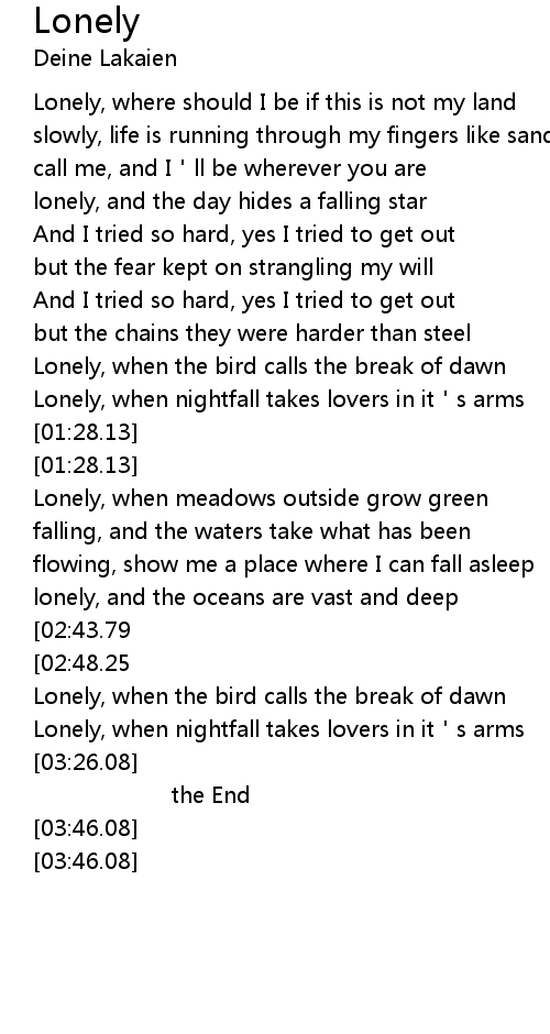 | [00:10.75] | Lonely, where should I be if this is not my land |