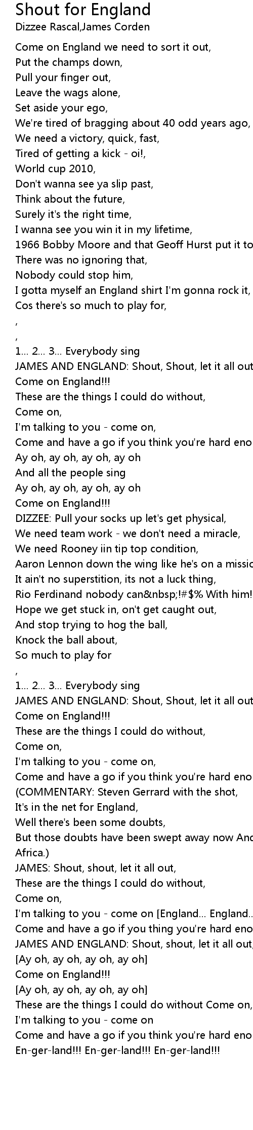 En-ger-land!!! En-ger-land!!! En-ger-land!!! |