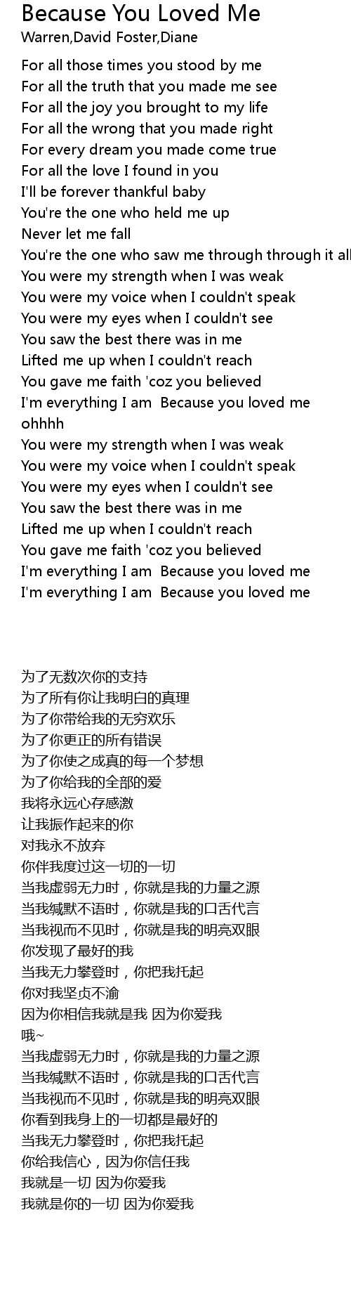 I'm everything I am Because you loved me |