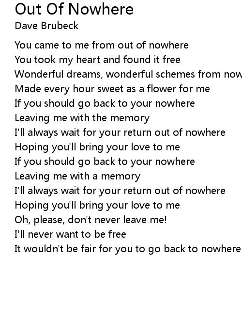 You came to me from out of nowhere |
