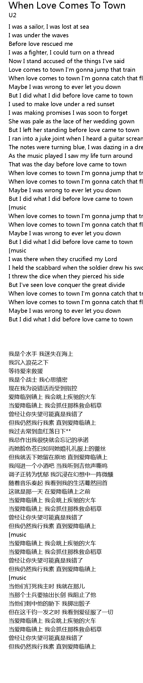 When love comes to town I'm gonna catch that train |