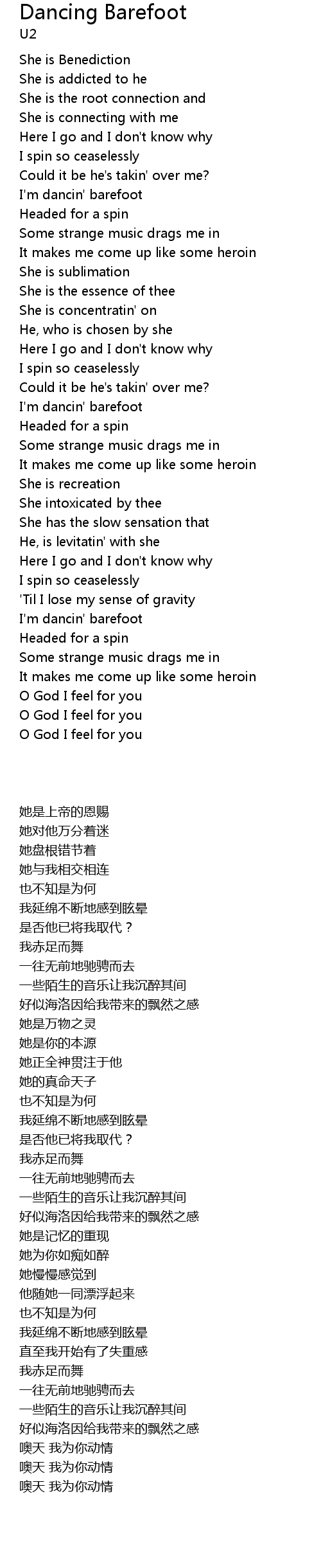I'm dancin' barefoot |