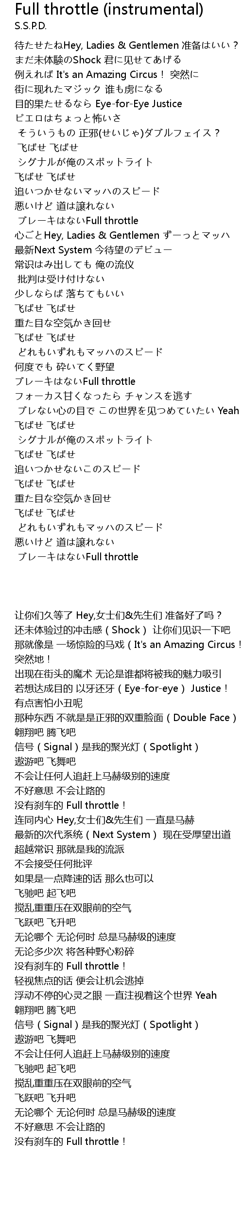 | [01:36.30] | 心ごとHey, Ladies & Gentlemen ずーっとマッハ |