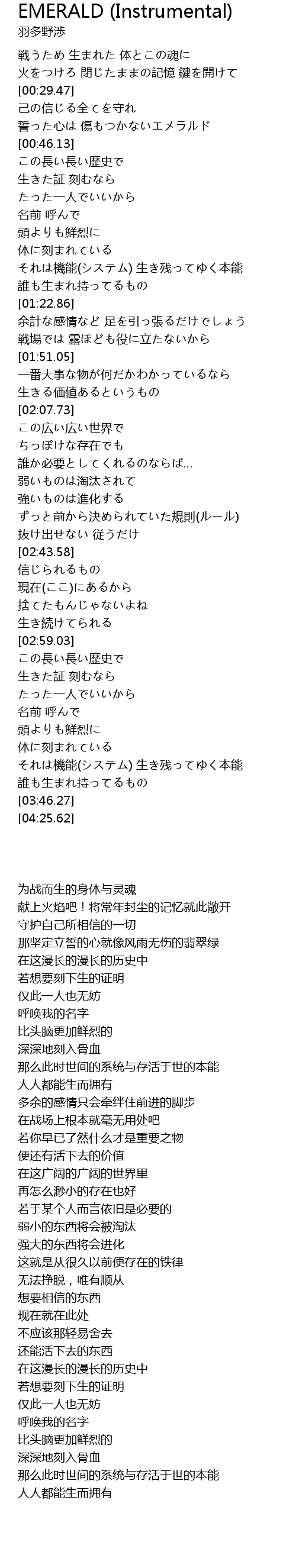 | [00:37.35] | 誓った心は 傷もつかないエメラルド |