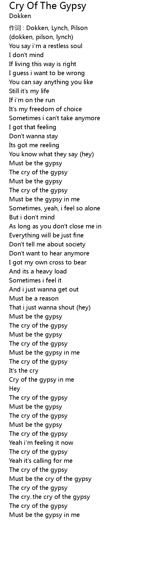 | Must be the cry of the gypsy | |