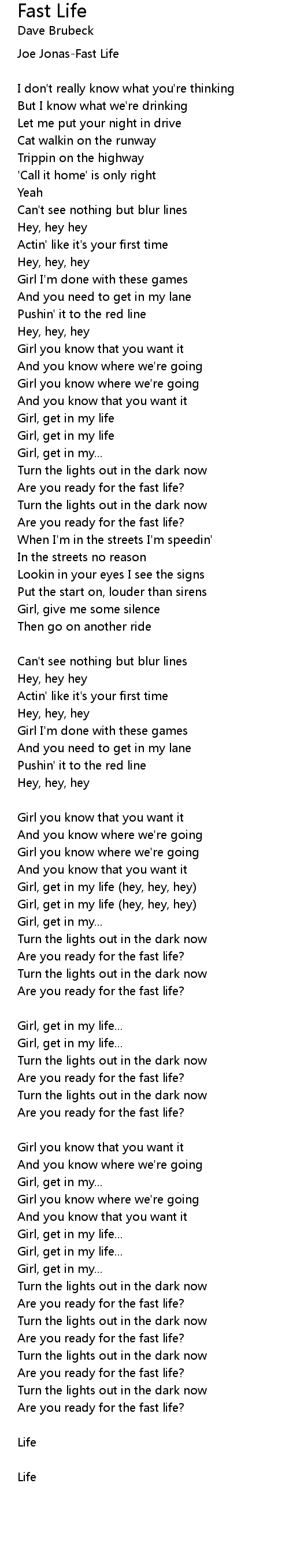 Joe Jonas-Fast Life |
