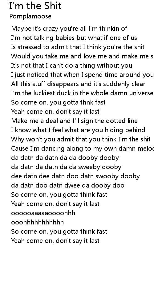 Why won't you admit that you think I'm the shit |