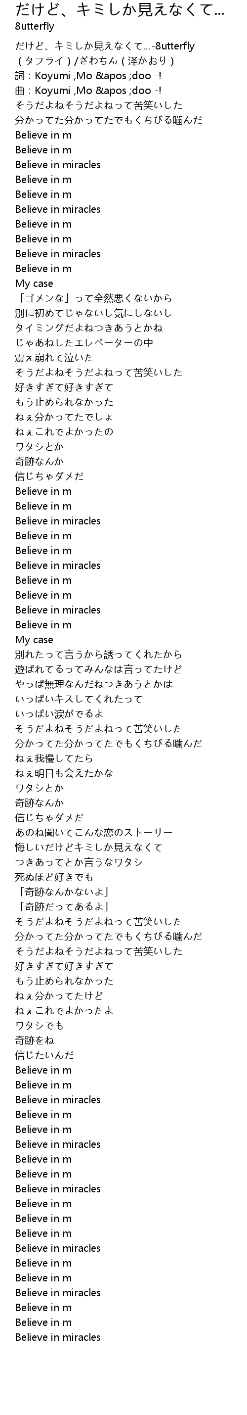 | [00:00.00] | だけど、キミしか見えなくて...-8utterfly (タフライ)/ざわちん(泽かおり) |