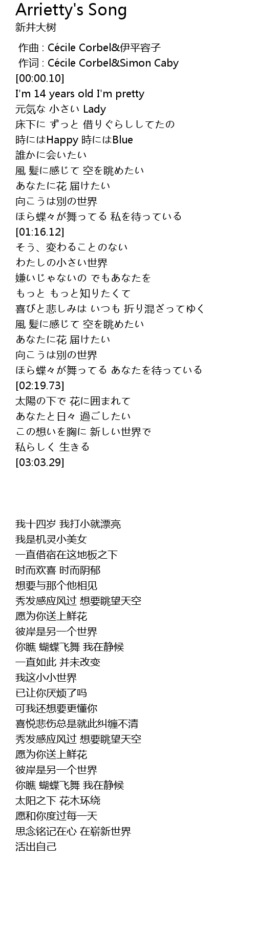 | [00:00.03] | zuò cí : Cé cile Corbel Simon Caby |