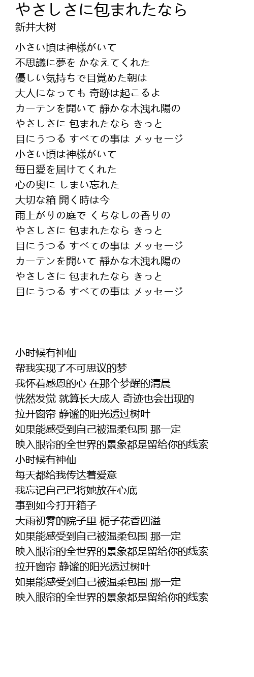 やさしさに 包まれたなら きっと |