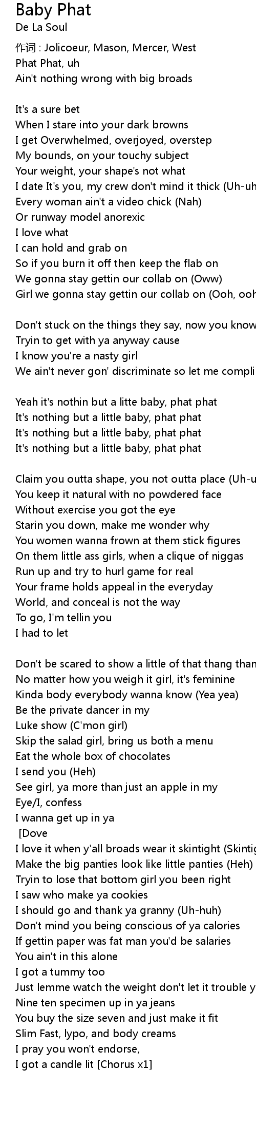 | It' s nothing but a little baby, phat phat | |
