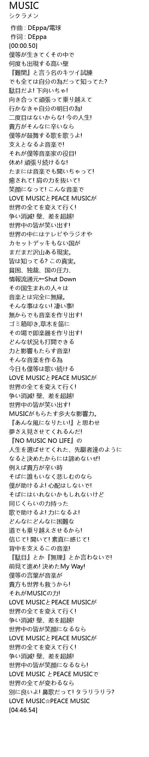 | [04:08.45] | LOVE MUSIC☆PEACE MUSIC |