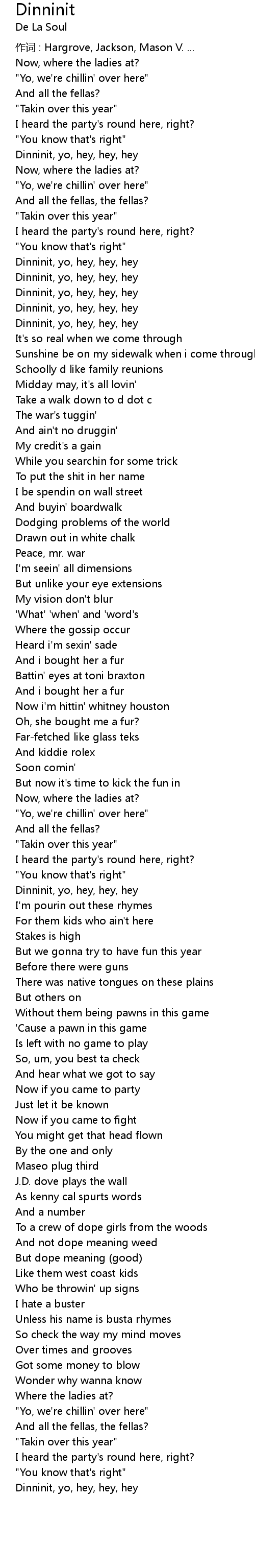 | Dinninit, yo, hey, hey, hey | |
