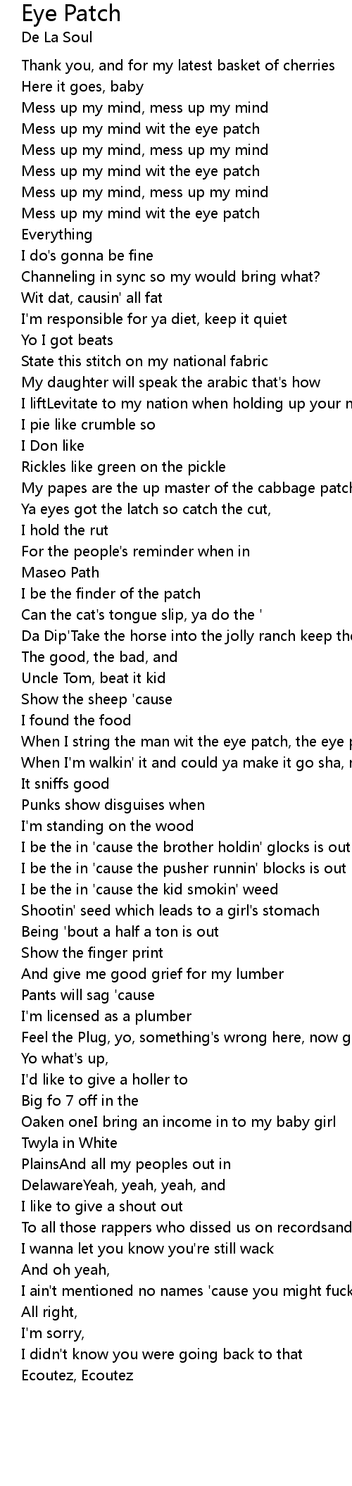 Mess up my mind wit the eye patch |