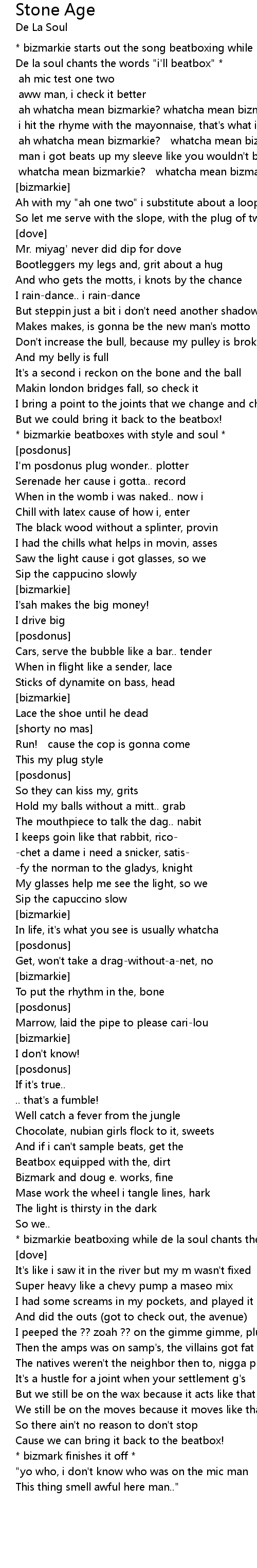 | * bizmarkie beatboxing while de la soul chants the words "i'll beatbox" * | |