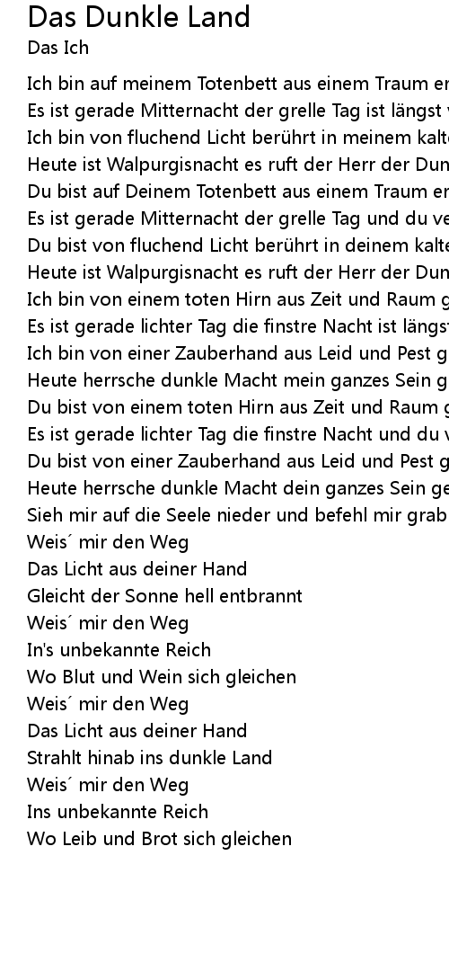 | Es ist gerade Mitternacht der grelle Tag ist l ngst verwest | |