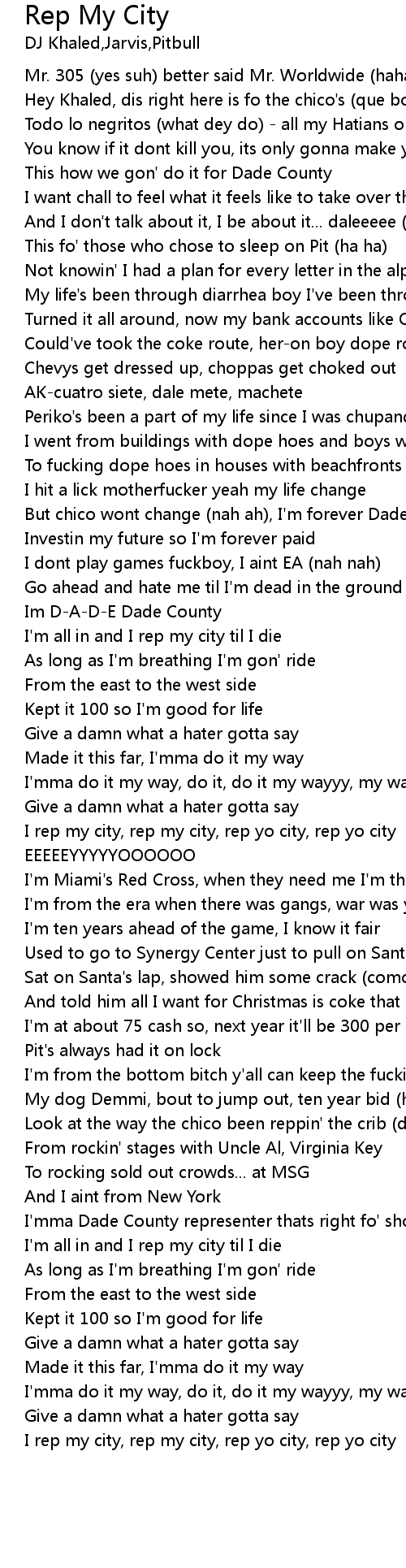 | I rep my city, rep my city, rep yo city, rep yo city | |
