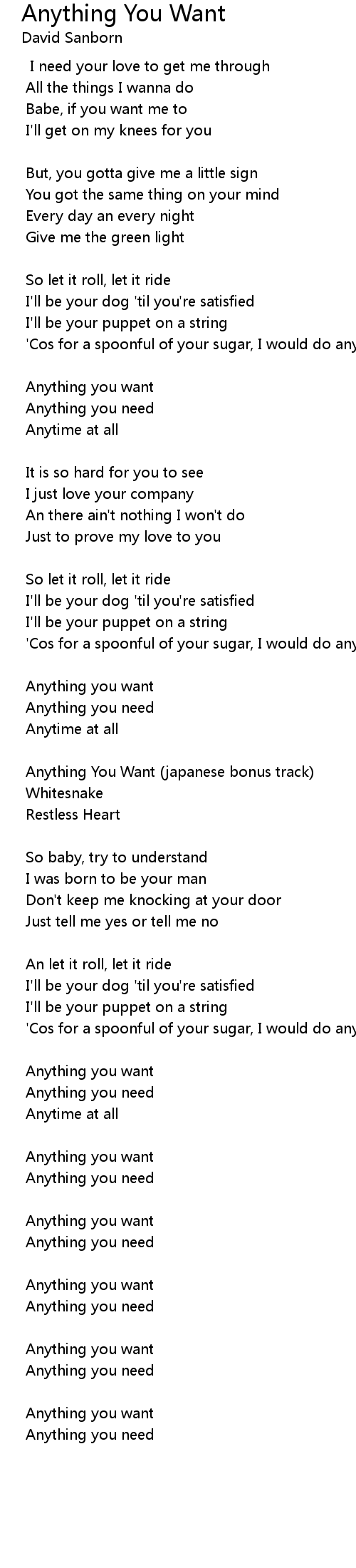 Anything You Want (japanese bonus track) |