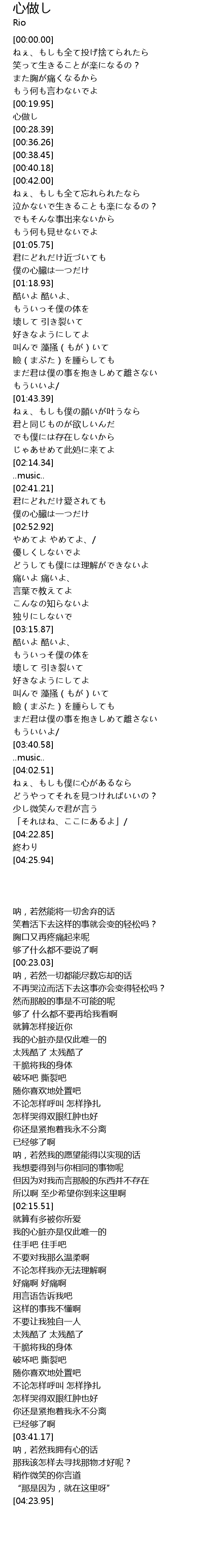 | [00:23.03] | 心做し |
