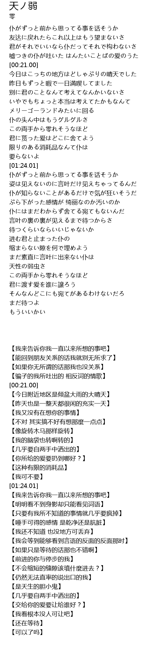 | [02:18.50] | 天性の弱虫さ |
