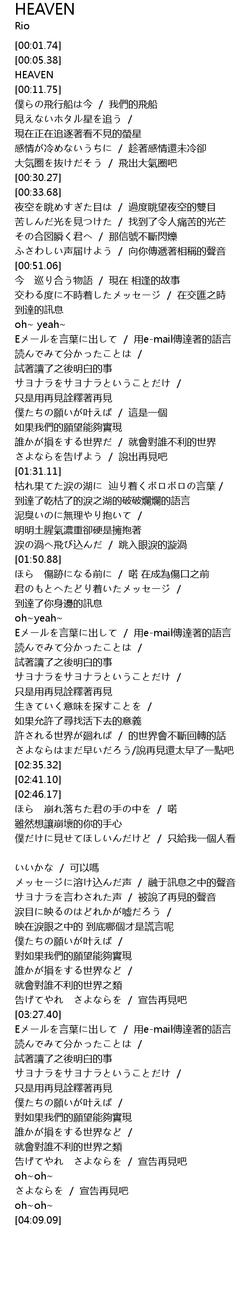 | [01:56.63] | 君のもとへたどり着いたメッセージ / 到達了你身邊的訊息 |