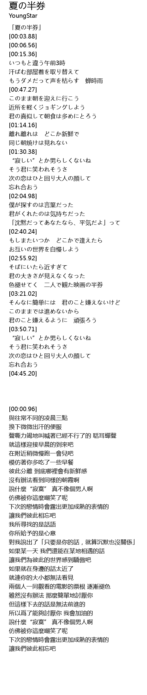 | [03:09.32] | 色褪せてく 二人で観た映画の半券 |