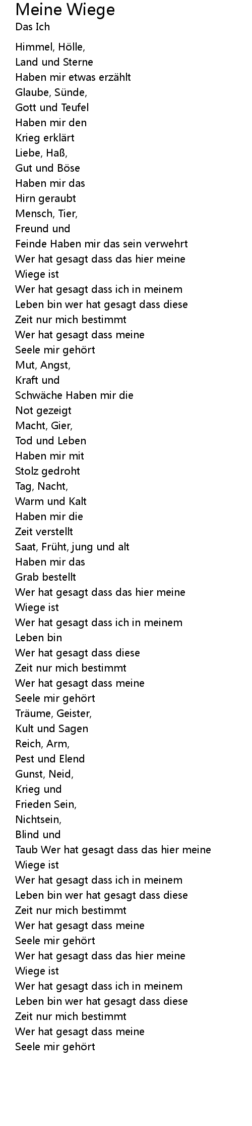 | Song | Meine Wiege |