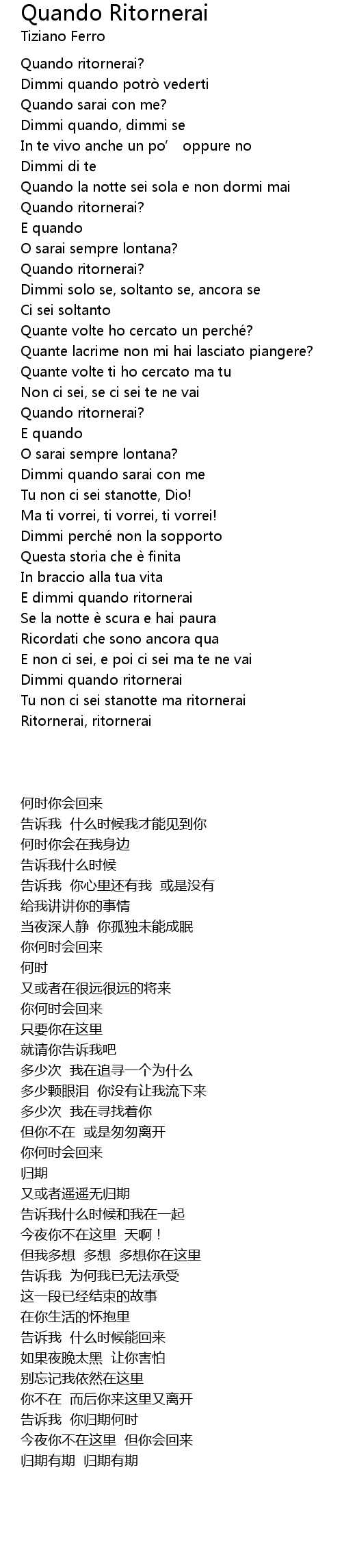 | [00:13.64] | Quando ritornerai? |