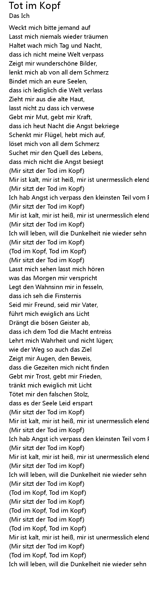 | Ich will leben, will die Dunkelheit nie wieder sehn | |