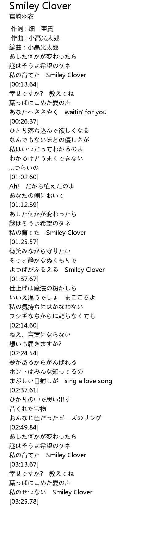| [03:21.02] | 私のせつない Smiley Clover |