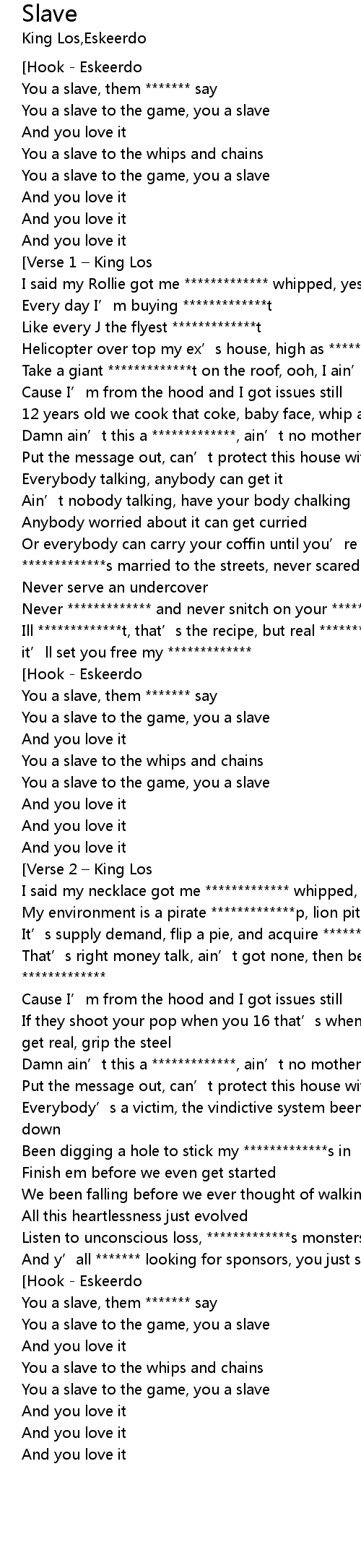 | [02:21.09] | And y’all ******* looking for sponsors, you just slaves |