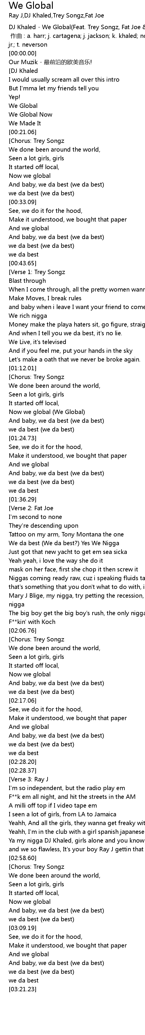 | [00:-03.00] | DJ Khaled - We Global(Feat. Trey Songz, Fat Joe & Ray J) |