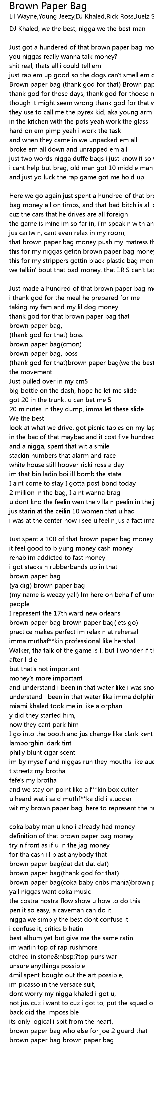 this for my niggas getitn brown paper bag money |